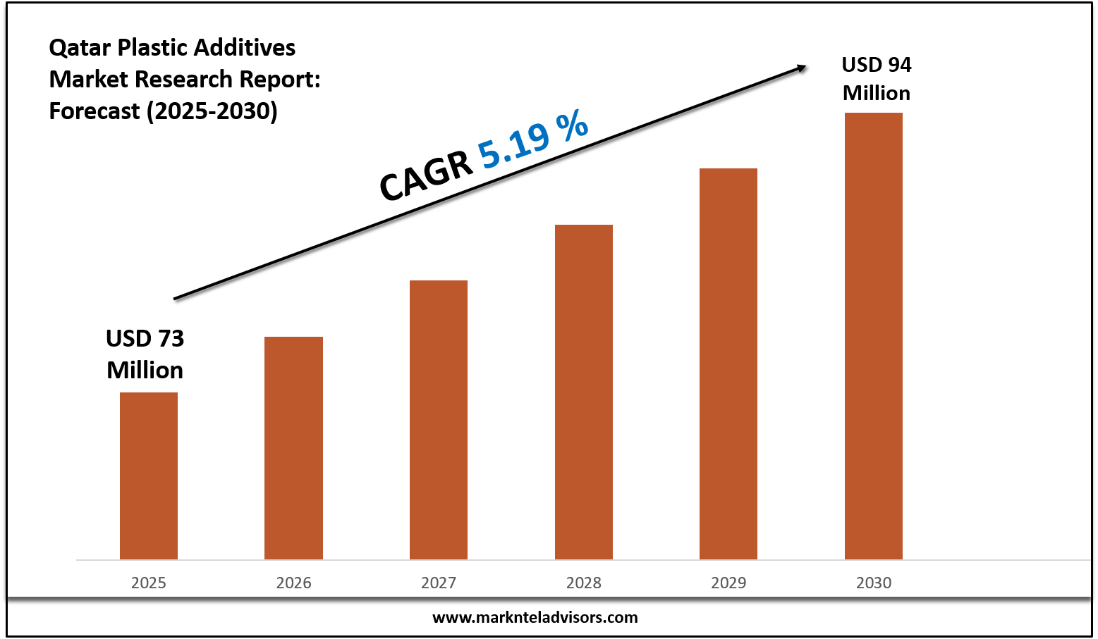 The Qatar Plastic Additives Market is on a promising trajectory, projected to reach USD 94 million by 2030, growing at a compound annual growth rate (CAGR) of 5.19%. The market was valued at approximately USD 73 million in 2025, bolstered primarily by strategic initiatives under Qatar National Vision 2030. These initiatives focus on economic diversification and significant investments in infrastructure, construction, and the growing food and beverage industries. As the demand for high-performance plastics surges, so does the necessity for renewable and durable additives that enhance product longevity and appeal.